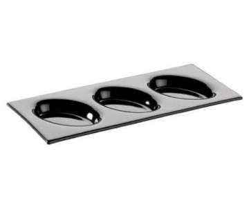 Glastablett m. 3 ovalen Vert. 32x14cm, tiefschwarz