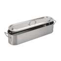 | Fischkessel L: 60cm, Induktion Der Fischkessel ist nach wie vor unverzichtbar für die einwandfreie Zubereitung von ganzen Fischen. Mit dem Gitter lässt sich der Fisch herausnehmen, ohne zu zerfallen. Für alle Herdarten geeignet, inklusive Induktion. Spülmaschinengeeignet. |