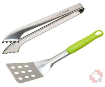 | Outdoorchef Grillbesteck Starter Set Grillbesteck Starter Set 1x Zange 1x Wender von Outdoorchef die Zange hat eine abgewinkelte Form und eine ideale Länge für leichtes Arbeiten auf und neben dem Grill, das Set enthält zudem einen breiten, soliden Wender mit Eckkante und ist so für diverse Einsatzmöglichkeiten geeignet |