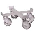 Rolli aus Edelstahl mit 4 Gummilenkrollen 10 cm, davon eine